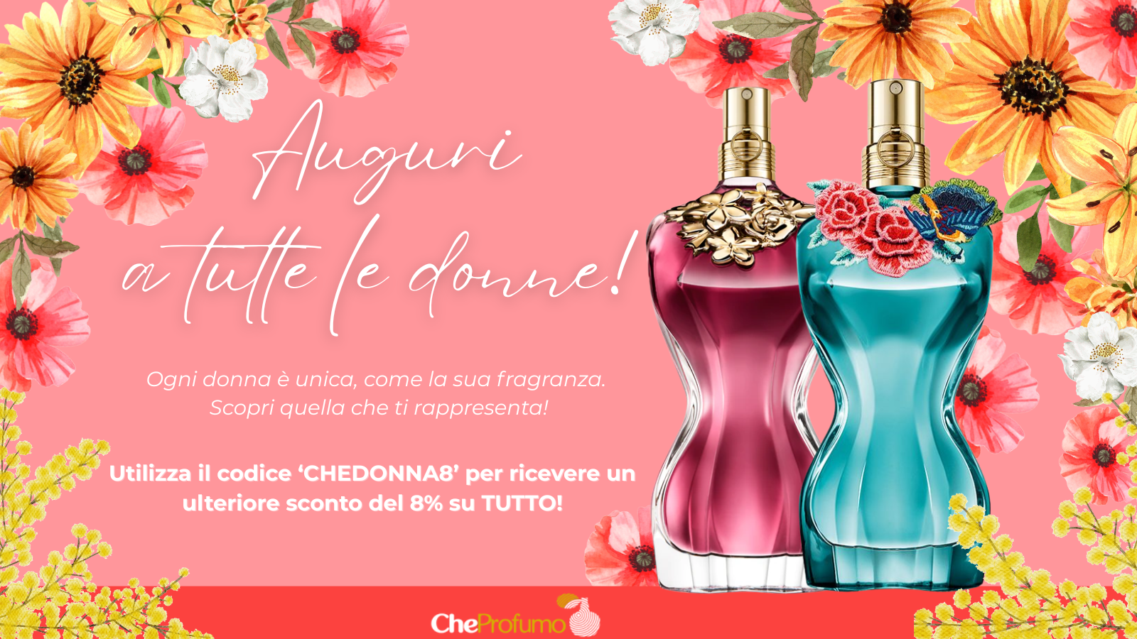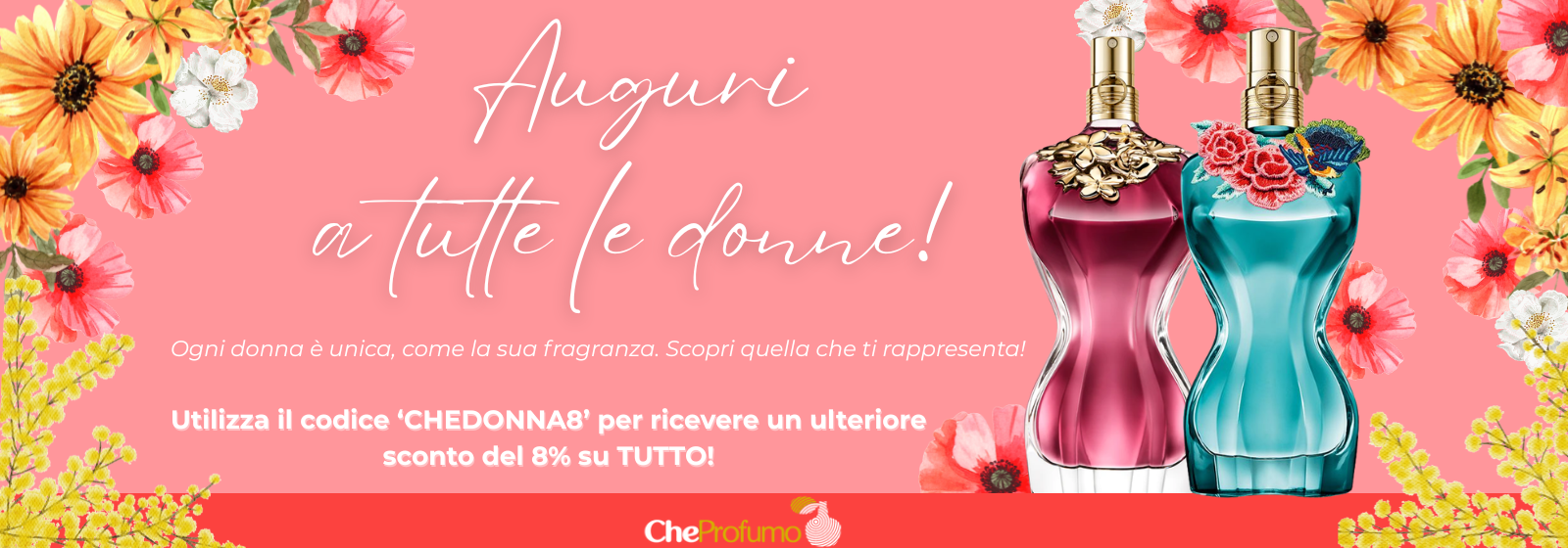 Inserisci il codice CHEDONNA8 al checkout e ottieni l'8% di sconto su ordini di qualsiasi importo!