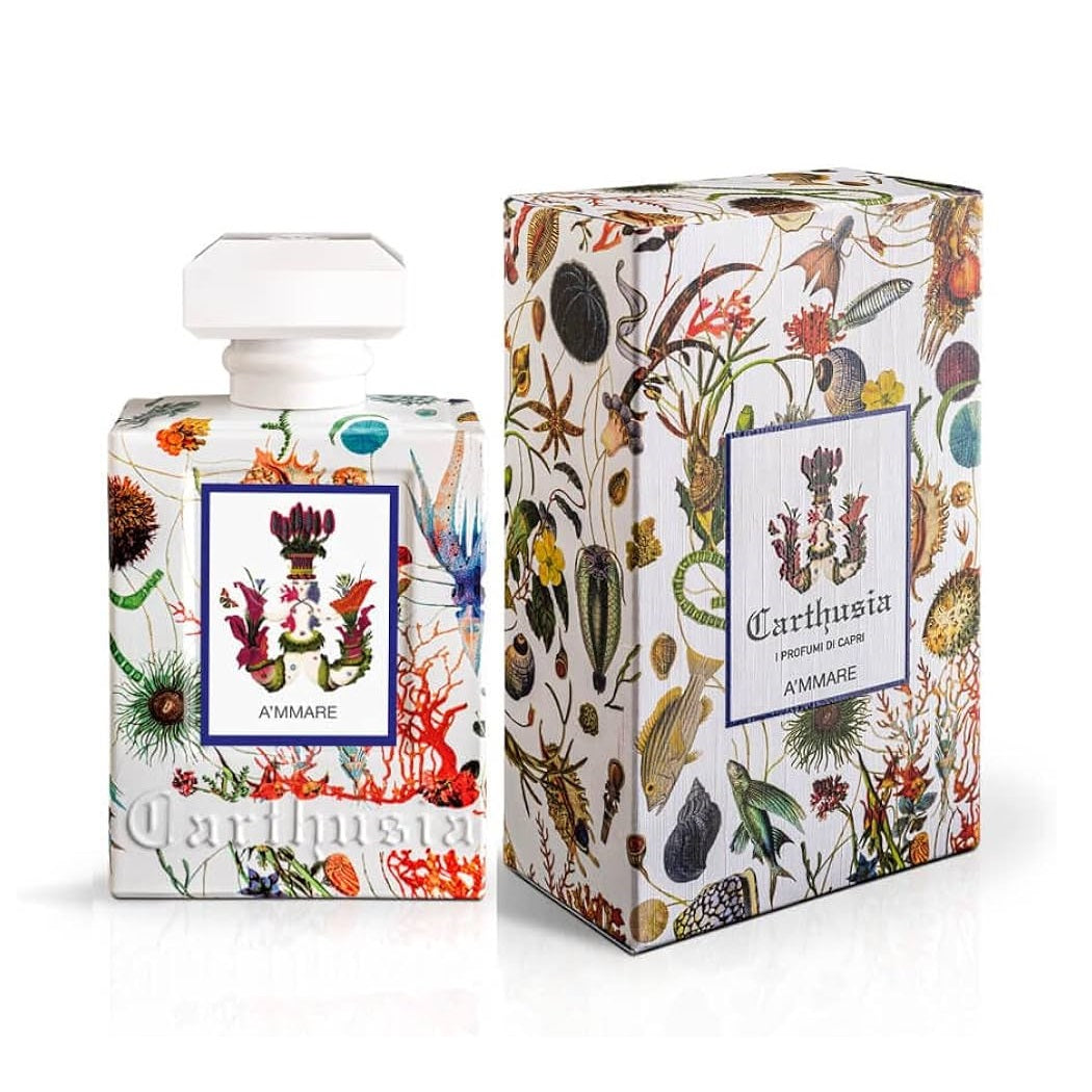 L’orizzonte è blu. Il Bergamotto, solare e brillante incontra il Rosmarino. Aromatico, a tratti pungente. Sulla pelle il Sale, fattosi cristallo. Limpido, inconfondibile. Un tuffo rinfresca, lascia spazio al nuovo. Foglie di Menta, morbidezza tenera, verde. Energia Nascosta. Ora la vista si sazia, l’orizzonte è completo. Legno di Cedro e Guaiaco, foresta preziosa proteggono Patchouli e Musk, doni in arrivo da lontano. La magia del racconto si compie, tutt’intorno. A’MMARE le fa eco.