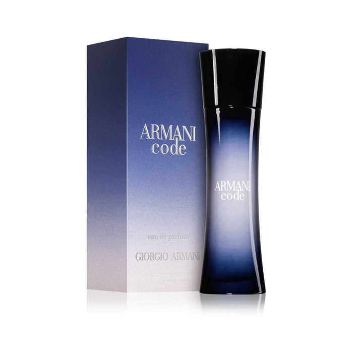 Armani propone nel 2006 un nuovo codice della femminilità, magnetico e seducente, Armani Code pour femme. Con quel suo nome enigmatico, simile a un messaggio in codice, Armani Code è il riflesso del profumo maschile omonimo. Elisir moderno, profumo dalla femminilità sconvolgente e sublimata, Armani Code 'rende omaggio alle donne dal potere magnetico'. La fragranza rivela il fascino sensuale e luminoso del fiore d`arancio in un flacone dalla silhouette notturna, ornato di un motivo orientale simile ad un merletto. Il profumo ha un inizio luminoso intorno alla scorza di due arance : un'arancia bigarade dell'Africa ed una proveniente dall`Italia. Nel cuore, la presenza dell'assoluto di fiore d`arancio della Tunisia offre alla fragranza il suo fascino sottile e solare, rafforzato dagli effluvi fioriti del gelsomino Sambac. La scia del fiore d`arancio si rivela sensuale nelle note di fondo dove troviamo un connubio dato dalla vaniglia del Madagascar e un tocco di miele. Il flacone dalle curve delicate e slanciate e dai colori sfumati dal nero al blu, ha inciso un motivo orientale simile ad un merletto, 'come un`ombra cinese tatuata a fior di vetro'.