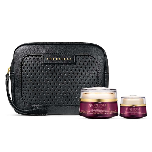 Un cofanetto regalo esclusivo realizzato in collaborazione con The Bridge per contrastare rughe, perdita di volume e compattezza. Al suo interno MAGNIFICA PLUS Crema Viso e Collo rimpolpante rigenerante 50 ml + Crema Occhi rimpolpante rigenerante SPF15 15 ml e la beauty-bag THE BRIDGE nera in similpelle con decoro laser frontale.