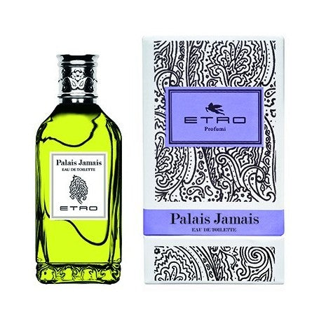 Palais Jamais di Etro � una fragranza del gruppo Legnoso Aromatico unisex. Palais Jamais � stato lanciato sul mercato nel 1989. Le note di testa sono Petitgrain, Bergamotto, Gelsomino e Mandarino, le note di cuore sono Betulla, Salvia e Muschio, le note di base sono Vetiver e Muschio di Quercia.