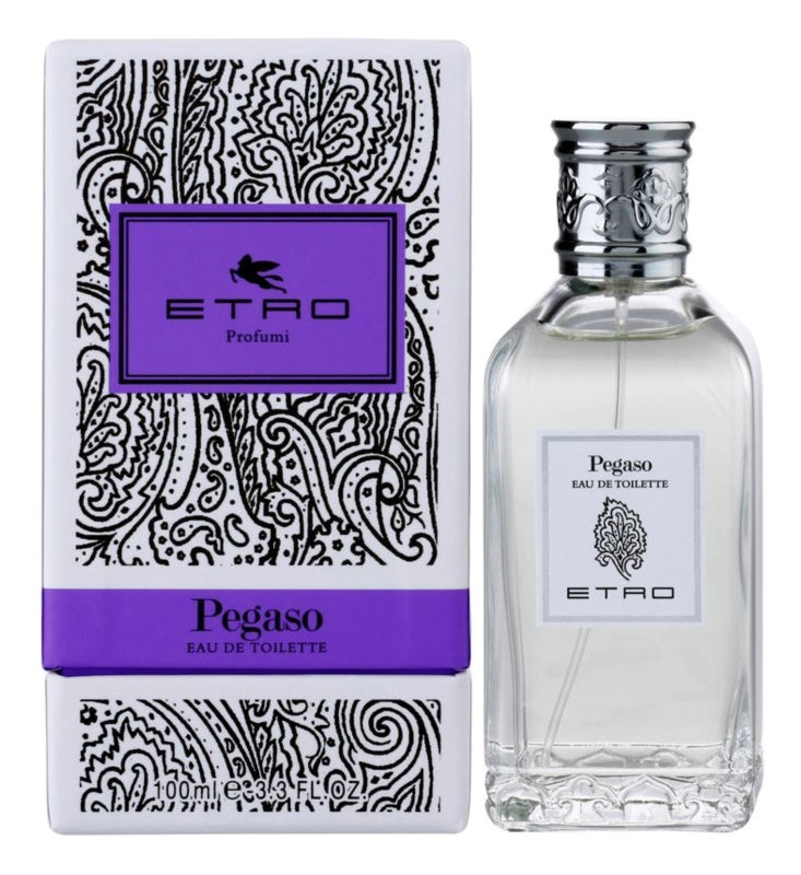 Pegaso, creato nel 2009 da Alberto Morillas, � il 22� profumo della maison Etro, di cui il mitico cavallo alato � il simbolo. Classicismo e Rinascimento, mito e poema epico, narrati in un profumo che unisce in un�unica anima la modernit� degli agrumi freschi (bergamotto e cedro) con le atmosfere classiche dei borghi medievali della Toscana e del�Umbria, dei loro giardini all�italiana, con il neroli, il basilico e le erbe balsamiche. Una fragranza creata come una pozione magica, un filtro d�amore, eterno e misterioso.